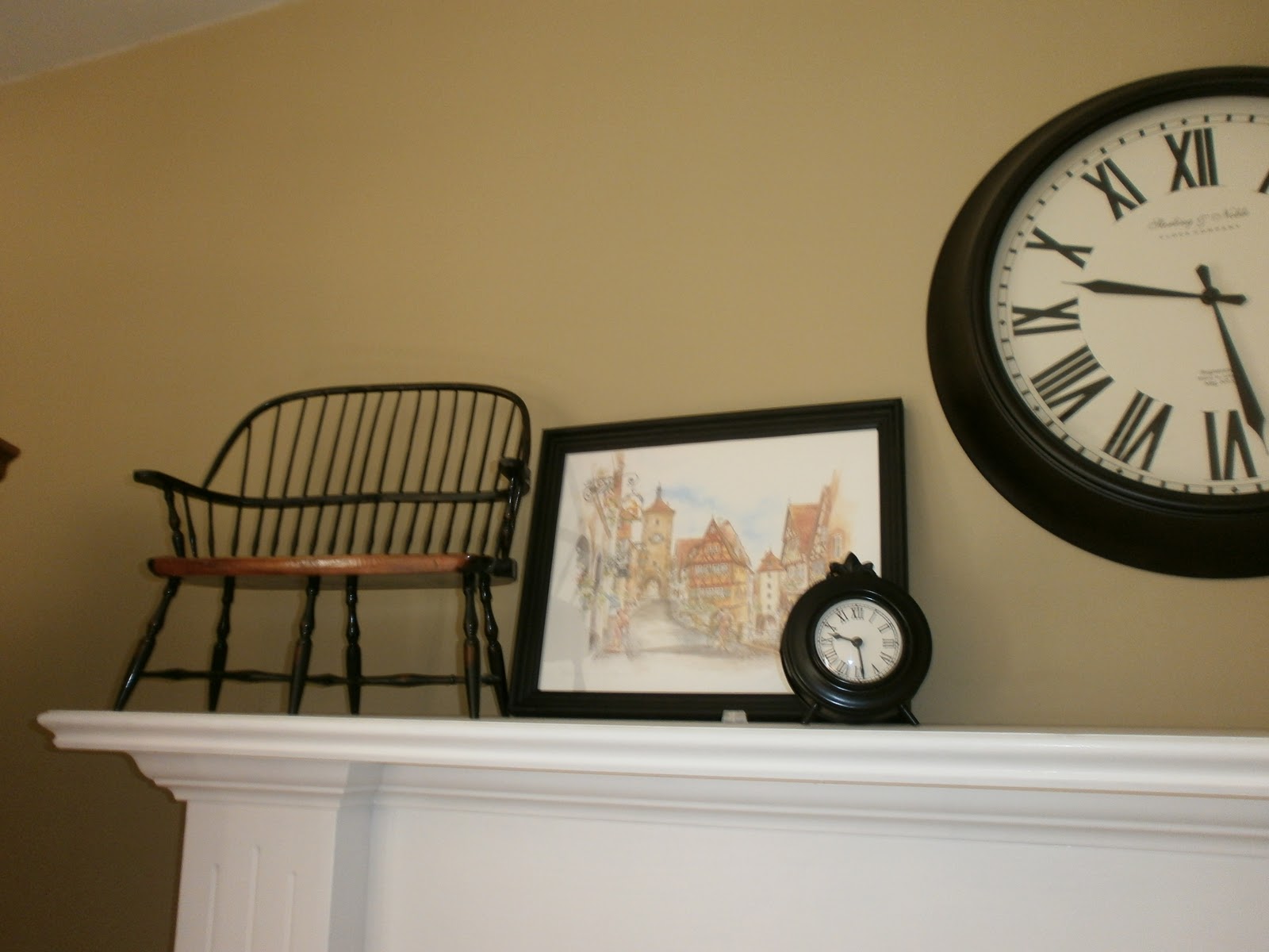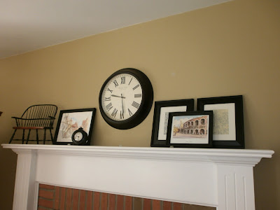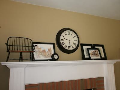 I also switched around some art and moved the graphic art piece from our wall to the mantel. I think it adds a modern touch to the natural, traditional elements. You may also notice the little plastic sticky pieces that are on the top of the mantel. A while back, I had a huge mirror on this mantel, and those sticky pieces were there to prevent the mirror from sliding. I should take them down, since I don’t need them anymore. Should have done that before the pictures… ๐