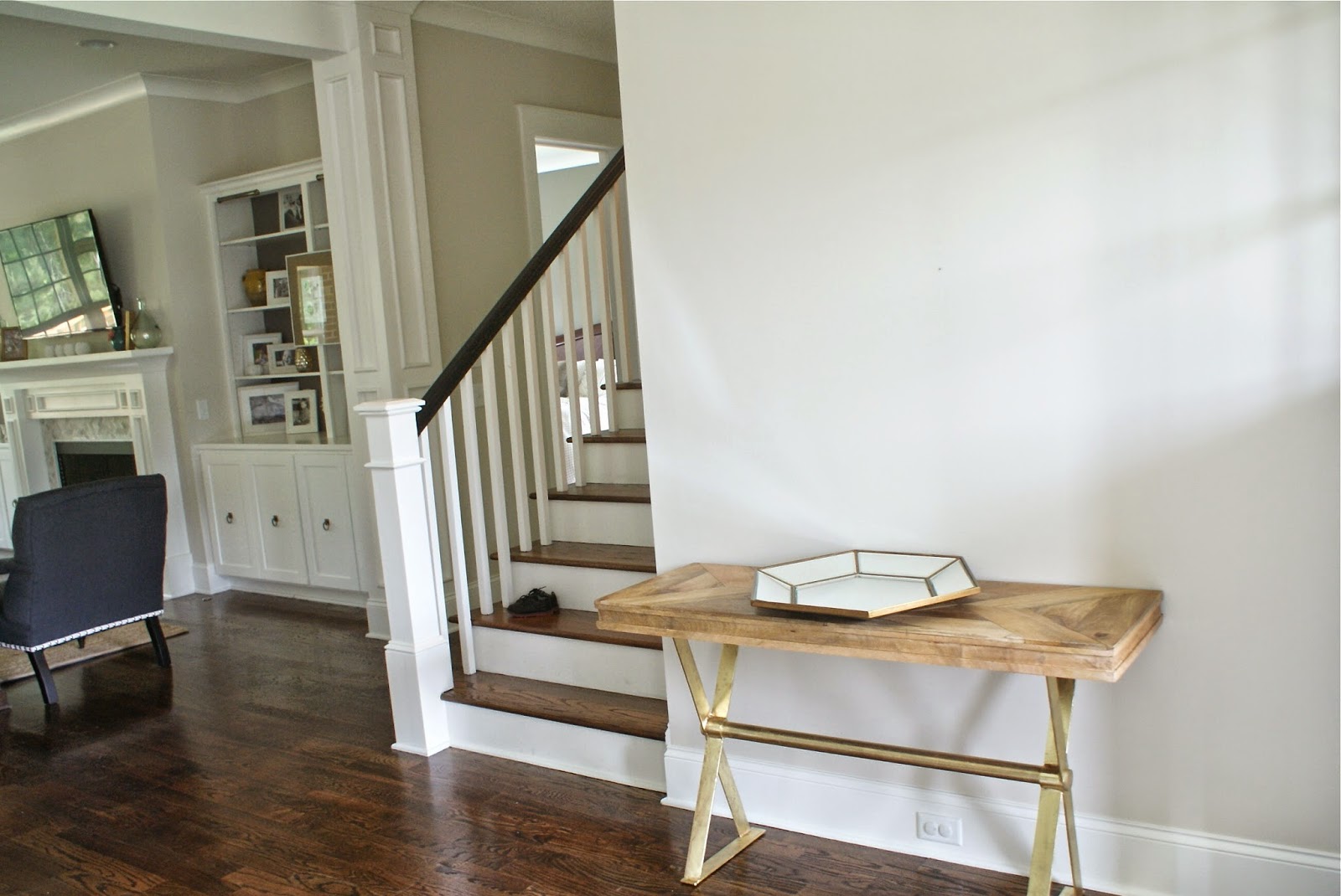 We kept the wall color and sconces, but the rest is new. And we are not finished! We are currently in the works to install a stair runner. Wait until you see which option they chose!! Thanks for stopping by. Up tomorrow… the before and after of the kitchen. The eating area was a clean, blank slate, which was fun to design!