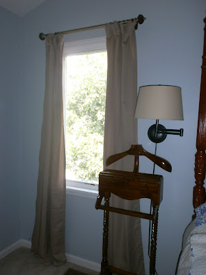 The curtains were being pushed to the side by the bench. Once we install the tiebacks for the drapery panels, I think it would be that much more apparent. I love the bench and its new home. It is now in the guest room, where it be a great spot to place towels, small suitcases, etc. And here is the new option…