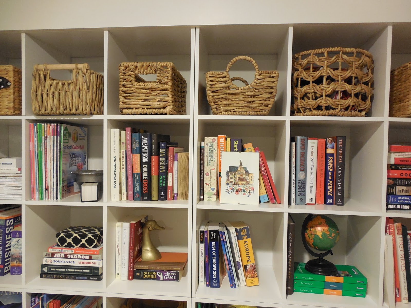 1. Start from scratch. The shelves should start with a clean slate, i.e. empty. My client was amazing and already spread out everything she had, so we could see what we had to work with. That’s so refreshing and helpful, so you can get right to it.