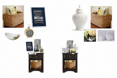 Today, I styled the shelves seen behind the sectional. There is my empty slate.